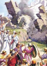Огромное войско отправилось торжественной процессией вокруг обреченных стен. Все было тихо, и только мерные шаги идущих людей и внезапный звук труб нарушали тишину раннего утра. Могучие каменные стены, казалось, дрожали от дыхания множества людей. С возрастающим страхом стражи на стенах города следили за всем происходящим. Вот пройден один круг, за ним второй, третий, четвертый, пятый и шестой. Какова цель этих таинственных процессий? Какое великое событие последует за всем этим? Им не пришлось долго ждать. Как только окончился последний круг, длинное шествие остановилось. Трубы, ненадолго смолкшие, теперь зазвучали с необычайной силой, и от их звука, казалось, содрогнулась сама земля. Тогда стены из цельного камня с их массивными башнями и вышками зашатались от самого основания и с грохотом рухнули. Жители Иерихона оцепенели от ужаса, и израильские ополчения вошли в город и завладели им.